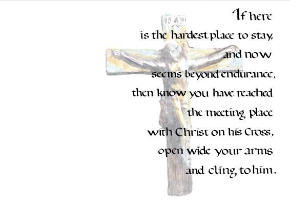 I discovered this prayer in the tiny gift shop of a Carmelite Monastery.  Apparently it was written by a young novice who was finding the going tough!  I hope it makes you feel less alone.