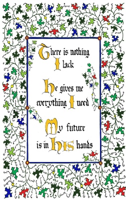 This was originally scribed to adorn the walls of the hermitage of a fellow solitary. In return I was sent an enormous monastic rosary, which is perfect for sleepless night vigils  -  it doesn’t get lost amongst the bed covers!  This design also makes an excellent greeting card for those who are suffering from poor health, or even a condolence card for the recently bereaved.  It is left blank so that you can adapt it to your own purposes.  Printed and hand finished on heavy textured card with a 120gsm laid envelope.  Lovely.