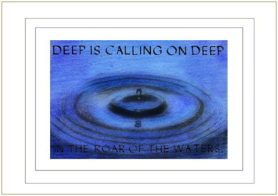 A Celebration of the Waters of Baptism:  The insde left of the card completes the verse:  Deep is calling on deep in the roar of the waters; your torrents and all your waves swept over me.   Hand finished on silky smooth white card (330gsm) with luxury smooth white envelope (120gsm).  Standard size for a simple message of support & welcome.  Presentation size transforms this into a really elegant & distinctive card - highly to be recommended.
