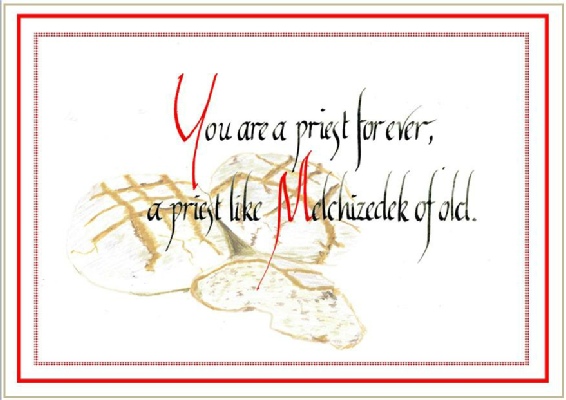And Melchizedek king of Salem brought out bread and wine: and he was the priest of the Most High God. And he blessed him, and said, "Blessed be Abram to the most high God, possessor of heaven and earth, And blessed be the most high God, which hath delivered thine enemies into thy hand". And he gave him tithe from all.  Genesis 14: 18-20.  Ideal for an ordination, an anniversary of ordination, or a baptism.
