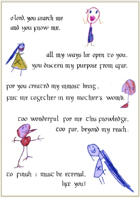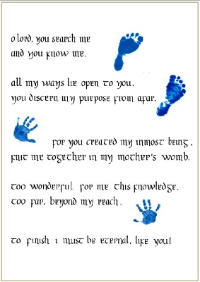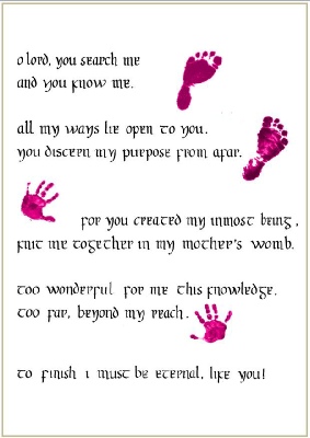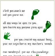 325: Lord you search me.  (pink footprints)  Psalm 139