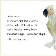 This comical & rather forlorn portrayal of the dodo is one of a series of designs sketched from ceramics made by Tracy Wright.  These unusual and attractive greeting cards all have a miniature sketch of the bird inside and are hand finished on top quality smooth 330gsm white card & accompanied by 135gsm heavyweight luxury envelopes. Standard size (A6) to drop a few cheerful words of greeting or support …  Presentation size (A5)  for a real bird lover. The dodo is sketched from a ceramic by Tracy Wright of  Zoo ceramics  www.zooceramics.co.uk.