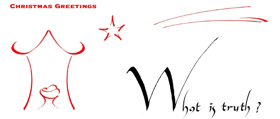 This year’s Christmas designs reflect an unexpected debate current in our media: What is Truth? No answers provided, just a few scriptural questions and quotations which may provoke a seasonal post-prandial discussion. As I am unable to process any card orders this year due to progressive disability, I offer you the designs embedded in this letter, in place of the usual end-of-year snapshots. I wish you all a thoughtful and benevolently disputative festive season, and the fruit and blessings of Truth in the New Year.