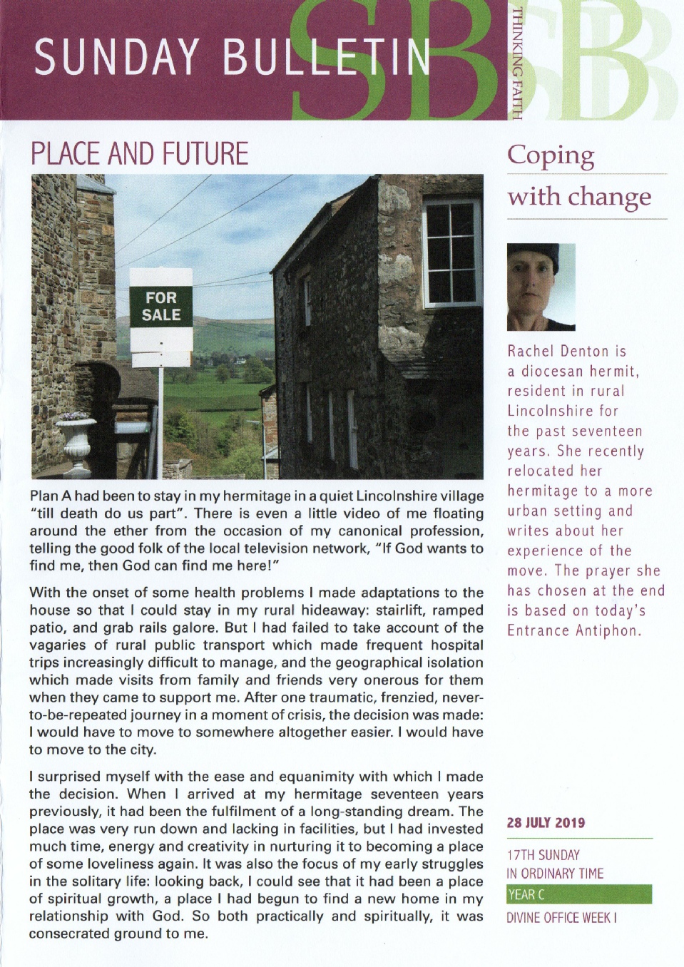 Place and Future: Rachel Denton is a diocesan hermit, resident in rural Lincolnshire for the past seventeen years.  She recently relocated her hermitage to a more urban setting and writes about her experience of the move.