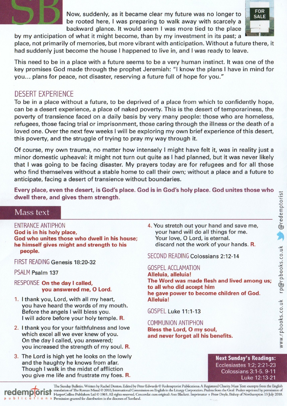 Redemptorist Publications: Sunday Bulletin,  July 28 2019.