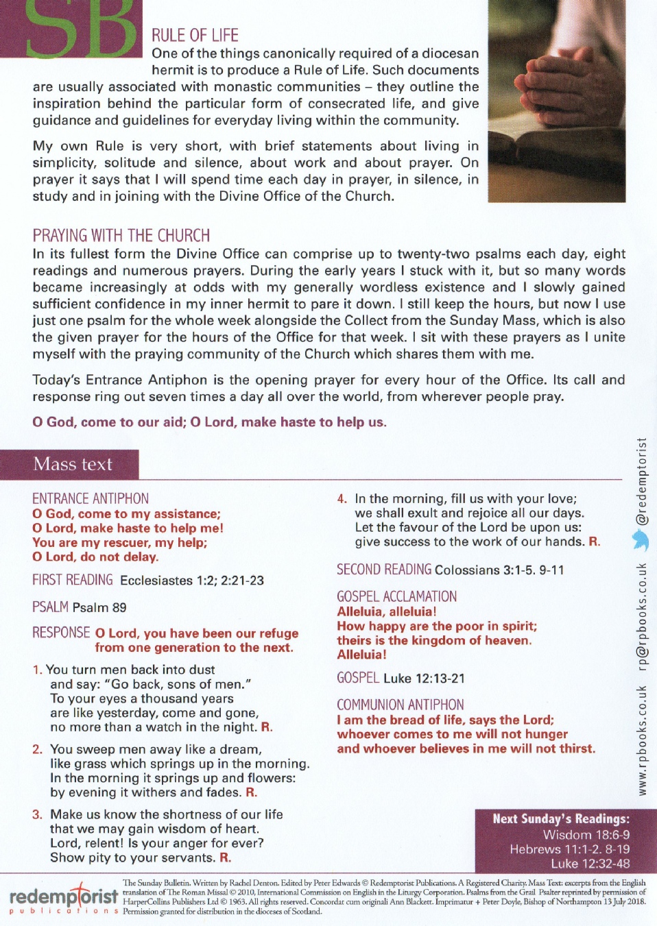 Redemptorist Publications: Sunday Bulletin,  August 4 2019.