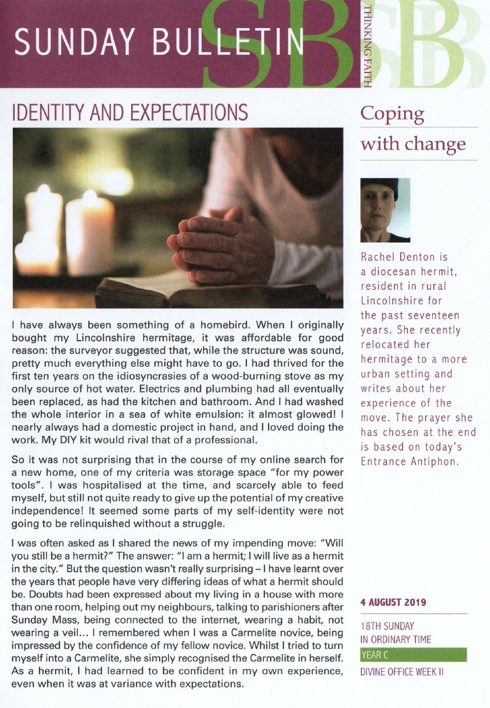 Identity and Expectations: Rachel Denton is a diocesan hermit, resident in rural Lincolnshire for the past seventeen years.  She recently relocated her hermitage to a more urban setting and writes about her experience of the move.