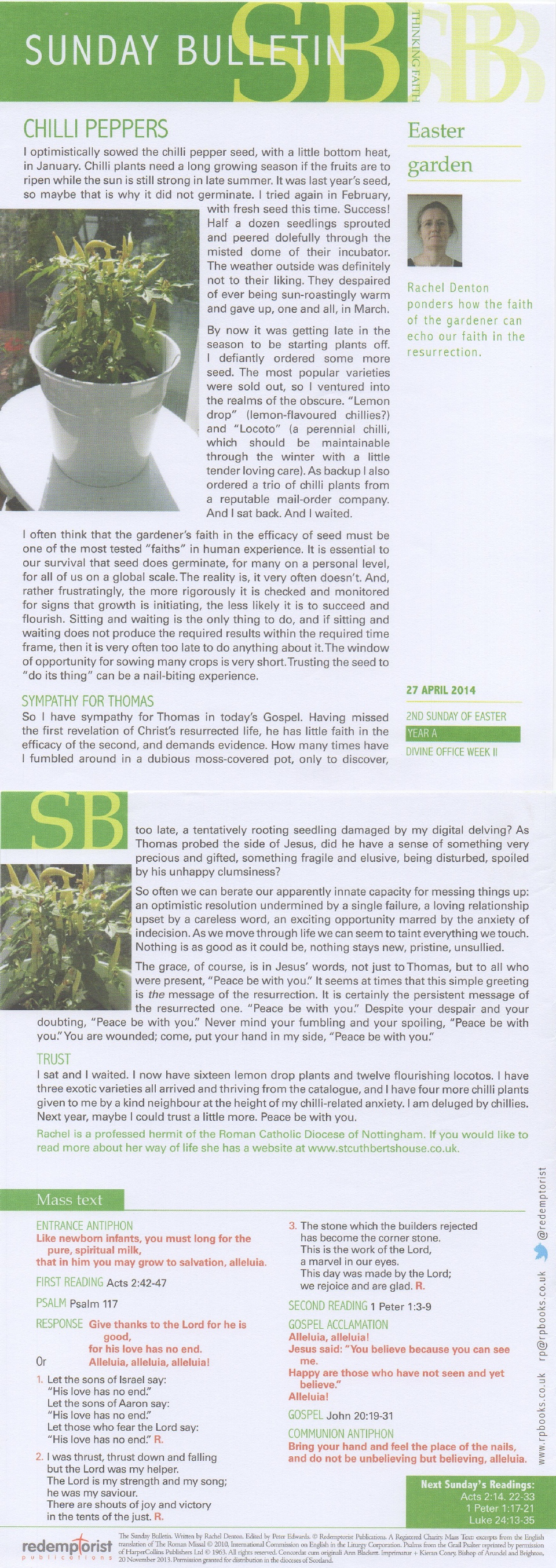 Easter Garden: Chilli Peppers.   In a new series for the Easter season, Rachel Denton reflects on the signs of new life in the world around her