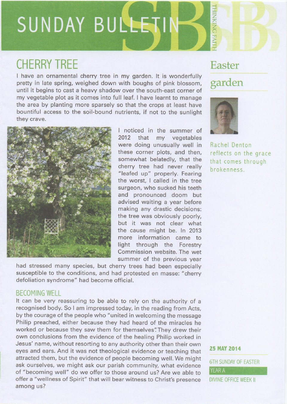 Easter Garden: Cherry Tree.   In a new series for the Easter season, Rachel Denton reflects on the signs of new life in the world around her