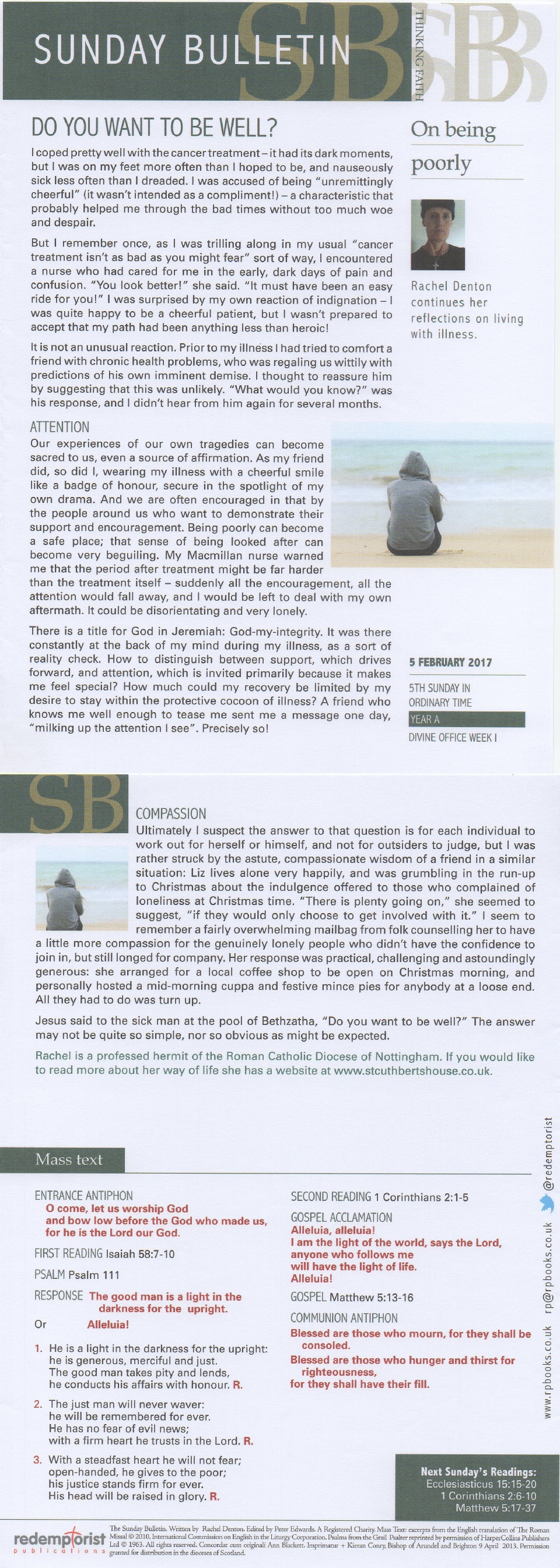Redemptorist Publications: Sunday Bulletin,  Feb 5, 2017.