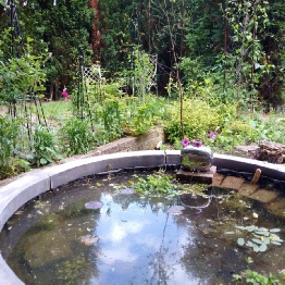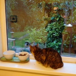 In other news: Access and The Garden. Last January I replaced the rather precarious, narrow, slippery, scarcely-a-patio outside the kitchen door, with a wide decking platform which wraps round the back and side of the bungalow and provides safe ramp access to garden, garage and front gate. The old patio stones were dropped down onto the lawn to make a pathway, so now I can visit my pond, or my woodland, or St Cuthbert’s bower, or even the compost heap, without getting muddy feet. I have also had a swathe of my laurel jungle removed for insurance reasons. With a clearer view now, the little boys in the garden next door like to clamber up their side of the fence, and direct the search party in the essential rescue of their cricket balls which come hurtling over throughout the summer months. They laugh when I can only throw them back underarm! Courtesy of their father’s obsessive hobby, I have also become something of an expert on racing pigeons. He keeps them in a shed at the bottom of the garden – I hear them crooning away to each other and to him whenever I visit the compost heap. The most lovely part of their training is quite early in the year when the weather begins to warm a little. The young birds begin to take off and circle the local rooftops and chimneys in great sweeping laps. They are beautiful to watch against a cloudless sky; quite mesmerizing. There is a campaign afoot to persuade me to house a pair of my own in a little cote in my garden next year. I am cautiously undecided.