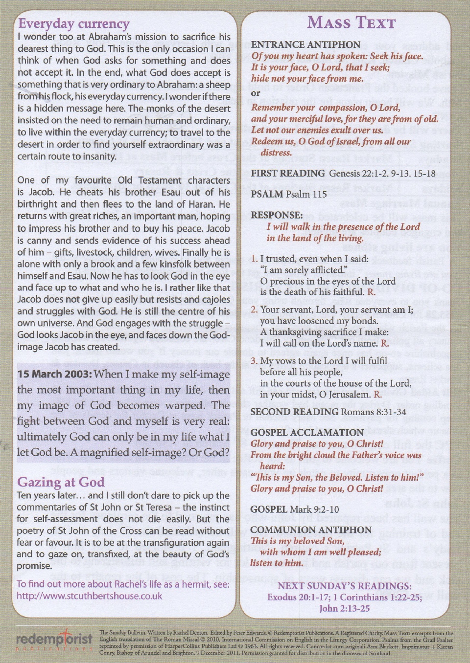 Redemptorist Publications: Sunday Bulletin,  March 4, 2012.