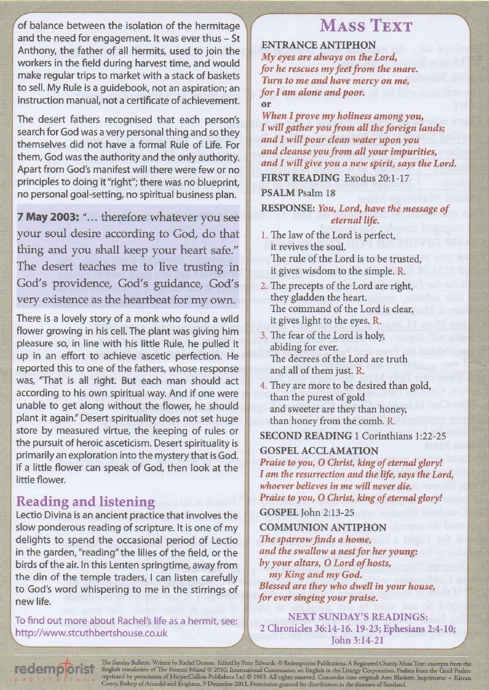 Redemptorist Publications: Sunday Bulletin,  March 11, 2012,