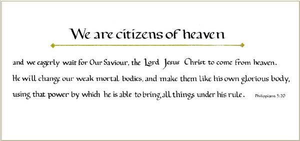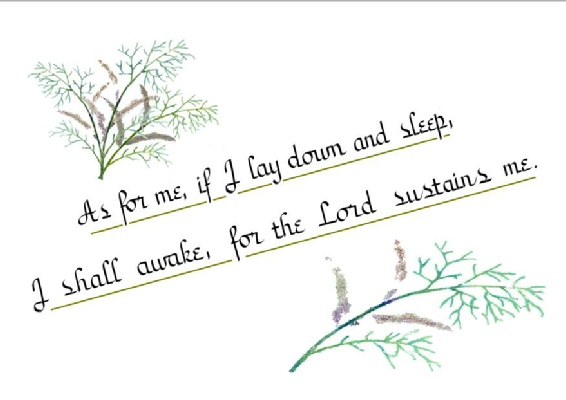 I scribed this card in celebration of the requiem of my Aunt - a Poor Clare Nun.  This reading is used every week by anyone who prays the Divine office.  It is the regular scripture for Compline after Evening Prayer II for Sunday. I like to print this design on ribbed 330gsm white card which lends it an extra, almost shimmering, dimension.  With 135gsm luxury white envelopes.