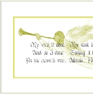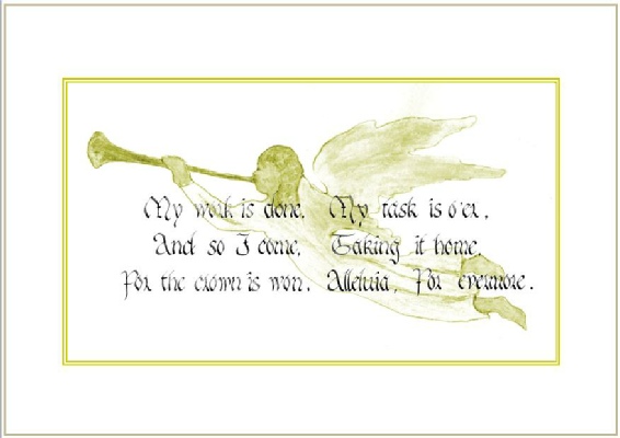 This was originally scribed to adorn the walls of the hermitage of a fellow solitary. In return I was sent an enormous monastic rosary, which is perfect for sleepless night vigils  -  it doesn’t get lost amongst the bed covers!  This design also makes an excellent greeting card for those who are suffering from poor health, or even a condolence card for the recently bereaved.  It is left blank so that you can adapt it to your own purposes.  Printed and hand finished on heavy textured card with a 120gsm laid envelope.  Lovely.
