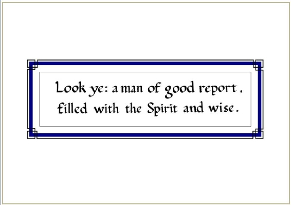 254: Look ye, a man of good repute. (blue)   Acts VI iii