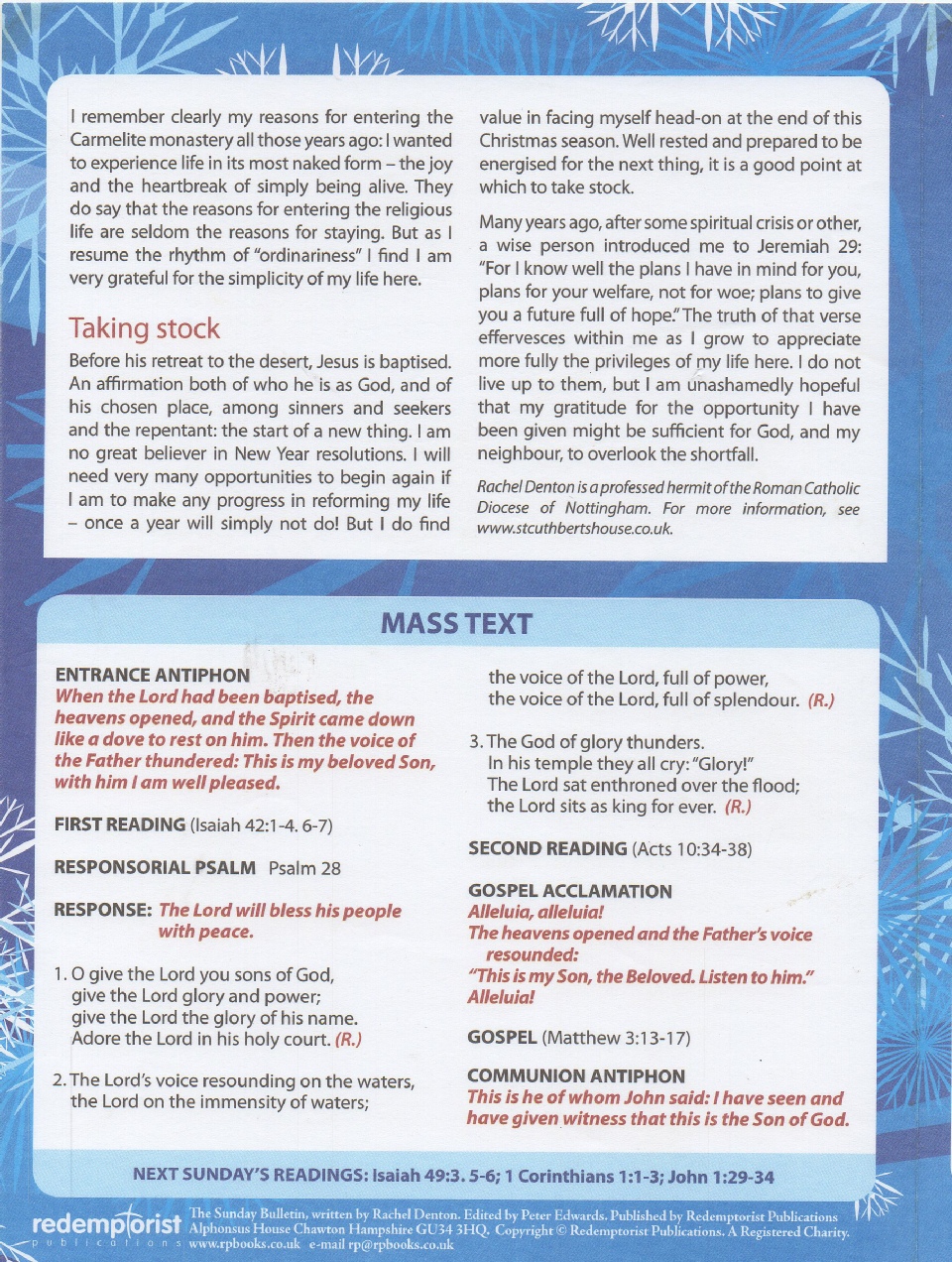 Redemptorist Publications: Sunday Bulletin, Jan 9, 2011.