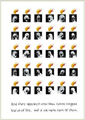 XIV  Pentecost:  And there appeared unto them cloven tongues like as of fire, and it sat upon each of them.