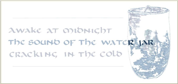Inspired by a Haiku by Matsuo Basho and printed on ribbed 330GSM card.  A greeting and a beautiful gift. "Awake at midnight, the sound of the water jar, cracking in the cold."