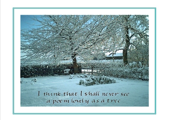 From Joyce Kilmer's poem, a wintry image celebrating the beauty of nature & reflected in the sparse calligraphic style. Hand finished on a heavy weight matt wove card (300gsm) with luxury smooth white envelope (135gsm). Standard size only.